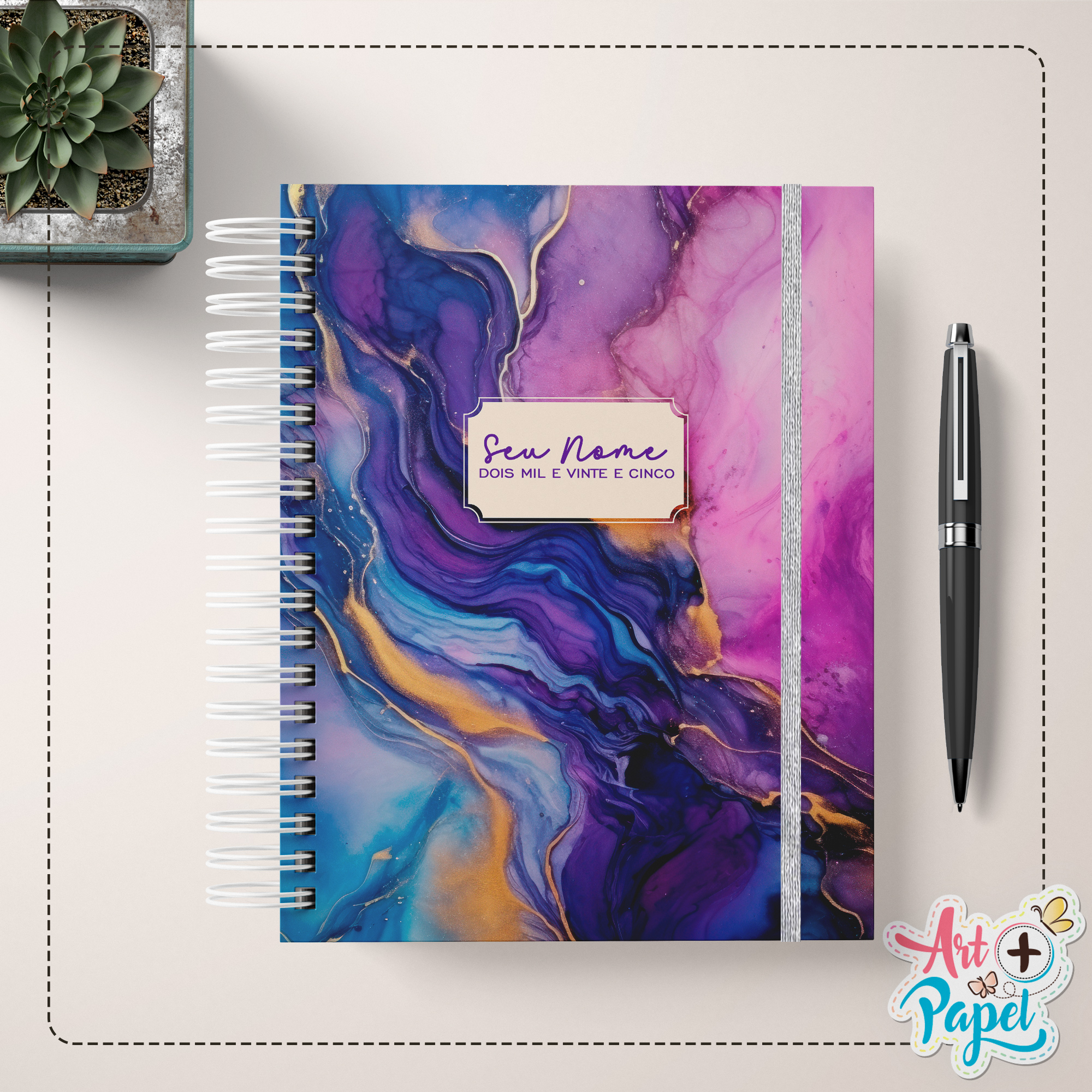 Capa dura combinando com a capa escolhida e 80 folhas em branco